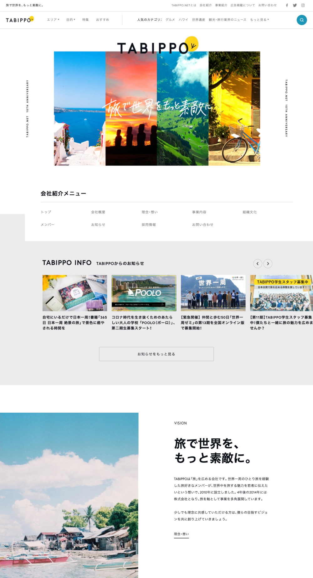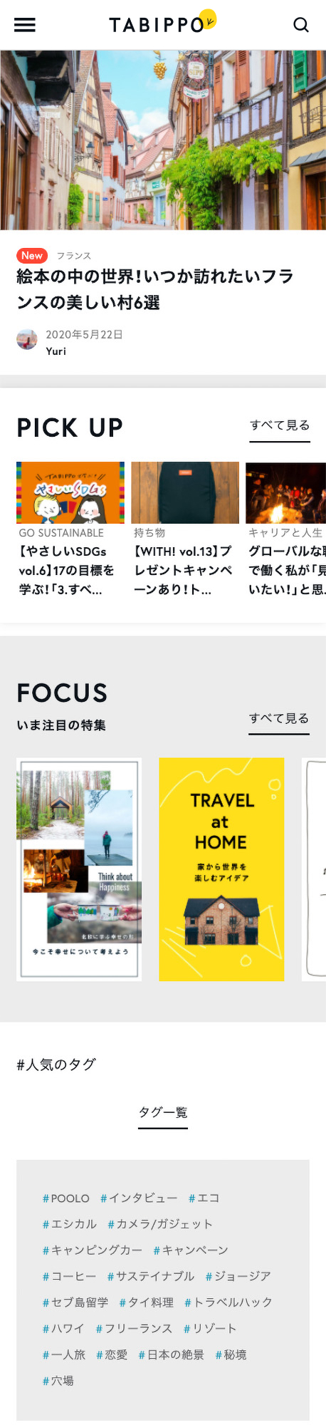 また視覚的な面においてはブランドリニューアルのトンマナに合わせて、サイト全体から「TABIPPO」の新たな世界観やカルチャーを表面化する必要があったので、ブランドディレクターの田中美子氏と何度もやりとりを繰り返し、Webデザインを通して「TABIPPO」の佇まいを再定義し、Webデザインに落とし込むことを目標にデザインしました。