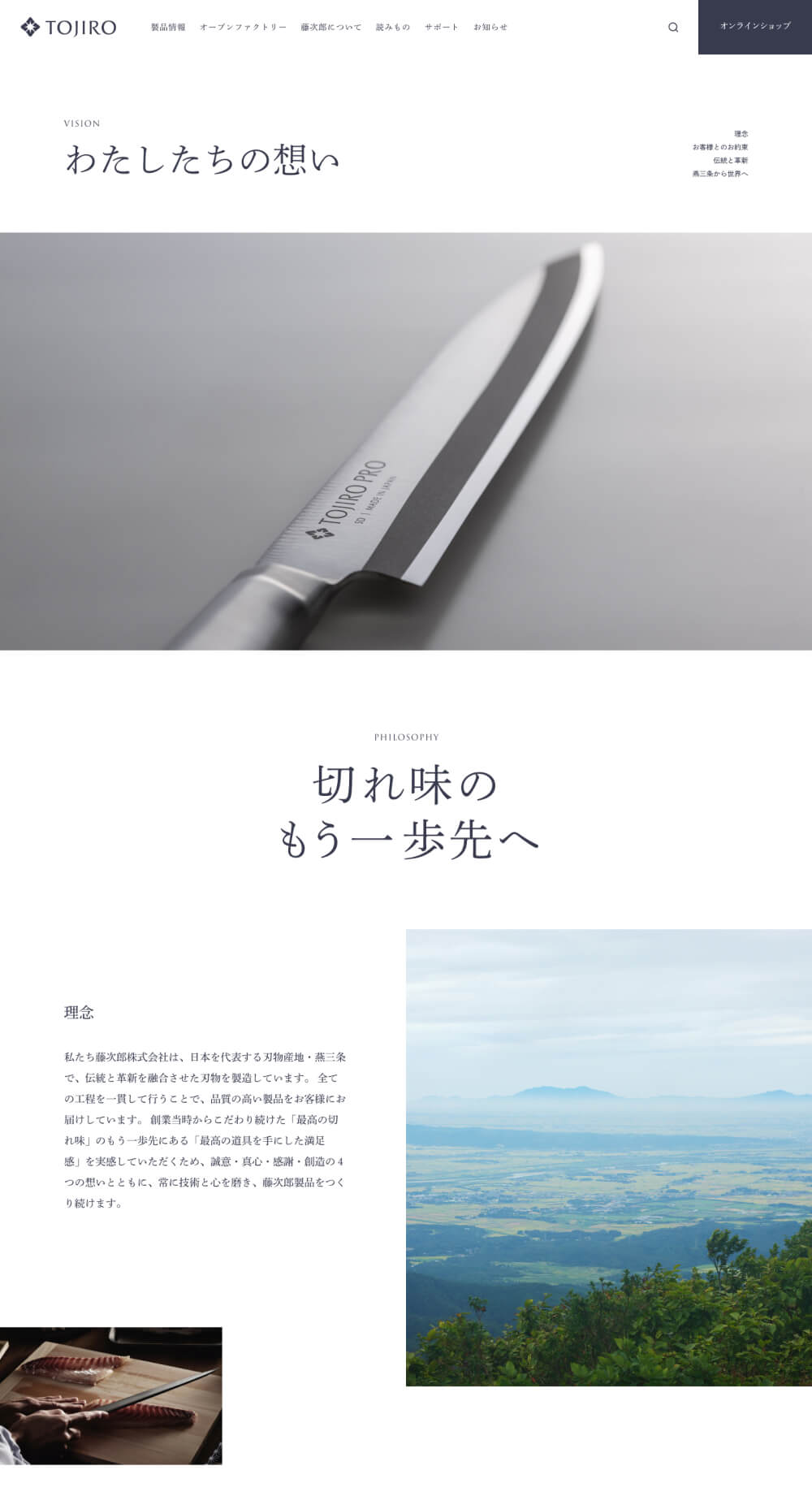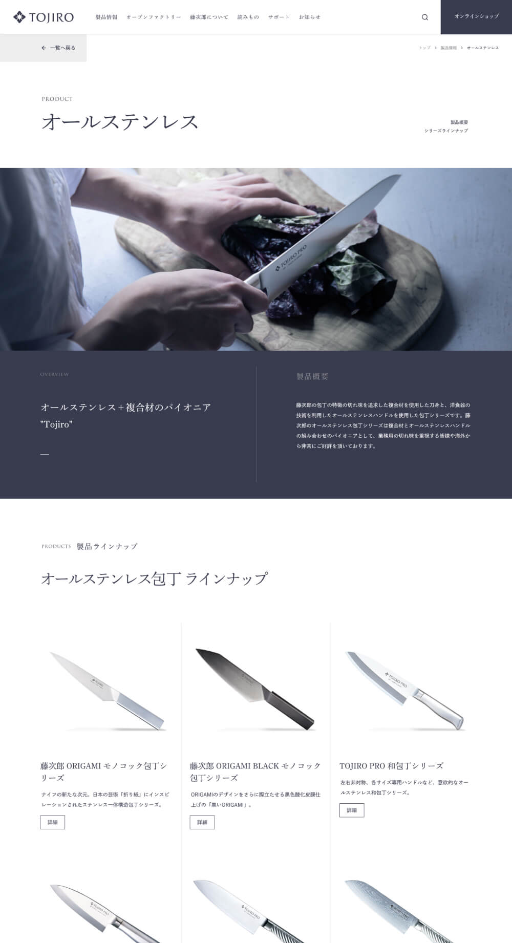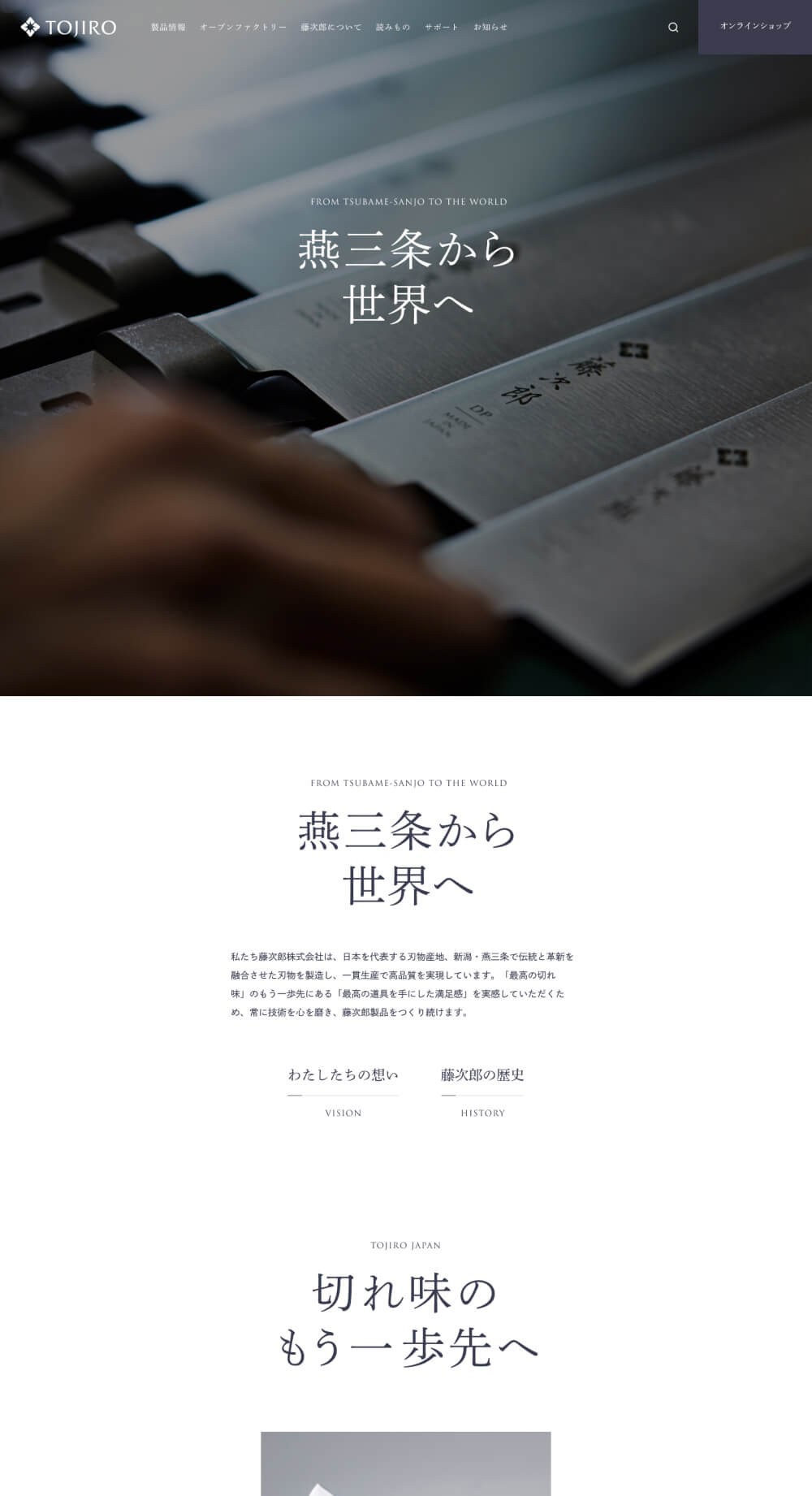 ECサイトのリニューアルに続きブランドサイトも刷新。きっかけは、前サイトでは「製品情報」の掲載を省いてあり(ECサイトで必要最低限の情報をカバーしていた)、認知が広まってきたことで製品について深く知りたいというニーズが出てきたため、改めて各製品の技術や製法を紹介するコンテンツが必要になったこと。そして、世界観としてもブランドコンセプトの1つでもある「ジャパンディスタイル」をより一層打ち出すべく、今回のリニューアルに至りました。