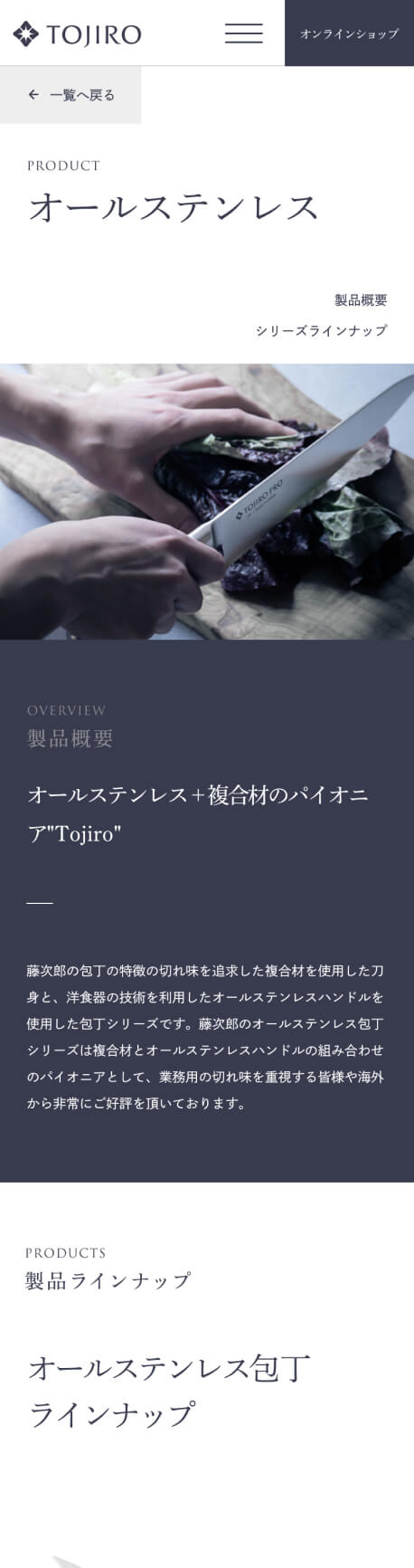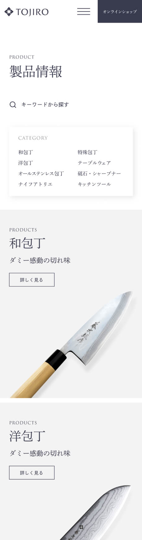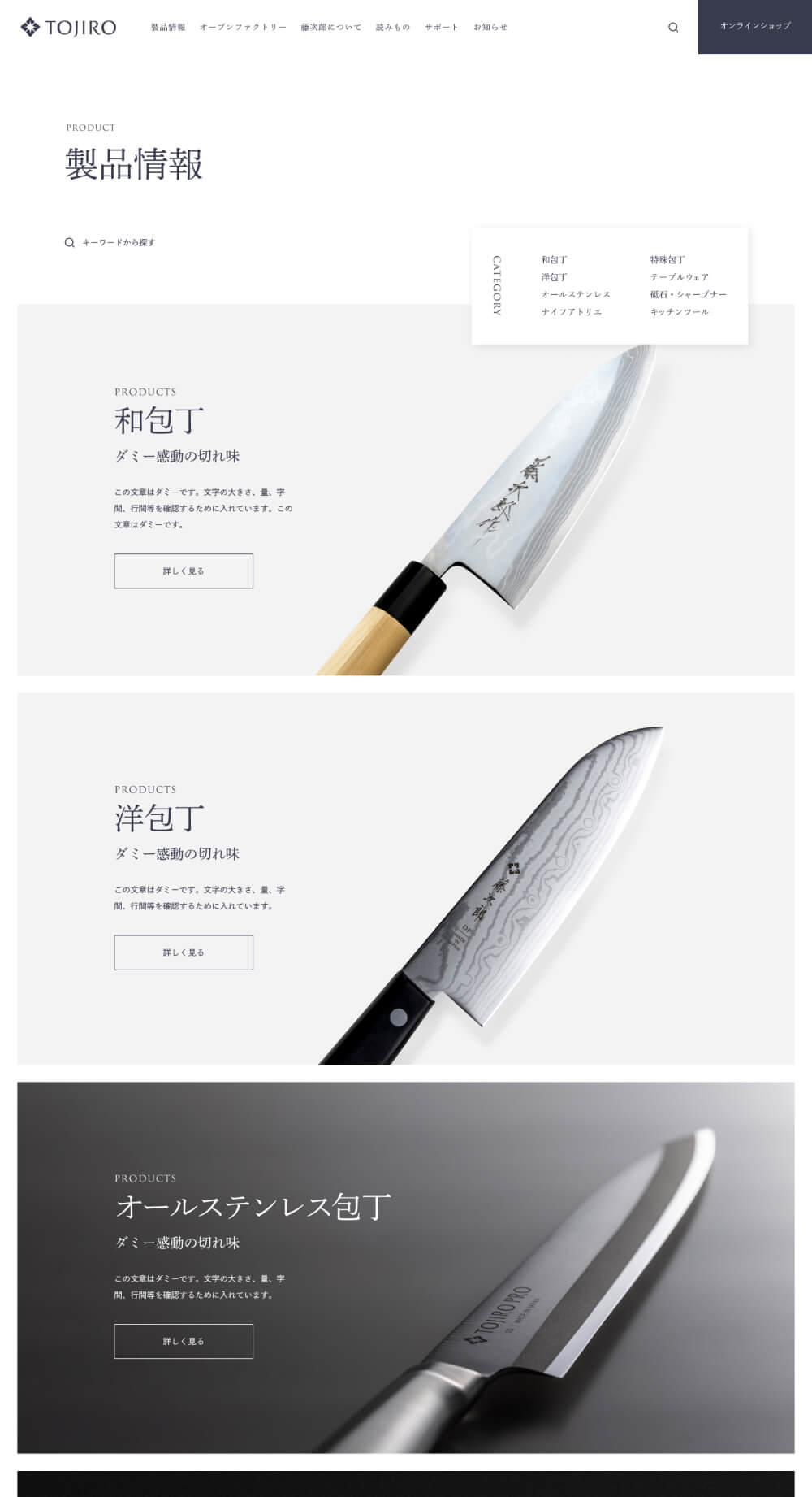 コンテンツ面のアプローチとしてはCMSによる製品情報の更新管理を徹底するため、画面設計もそれを前提に体系化。合わせて、豊富に持つ「包丁についての知識」を読み物メディアとして運用できるよう、CMSの仕組み及びUIを設計しました。
