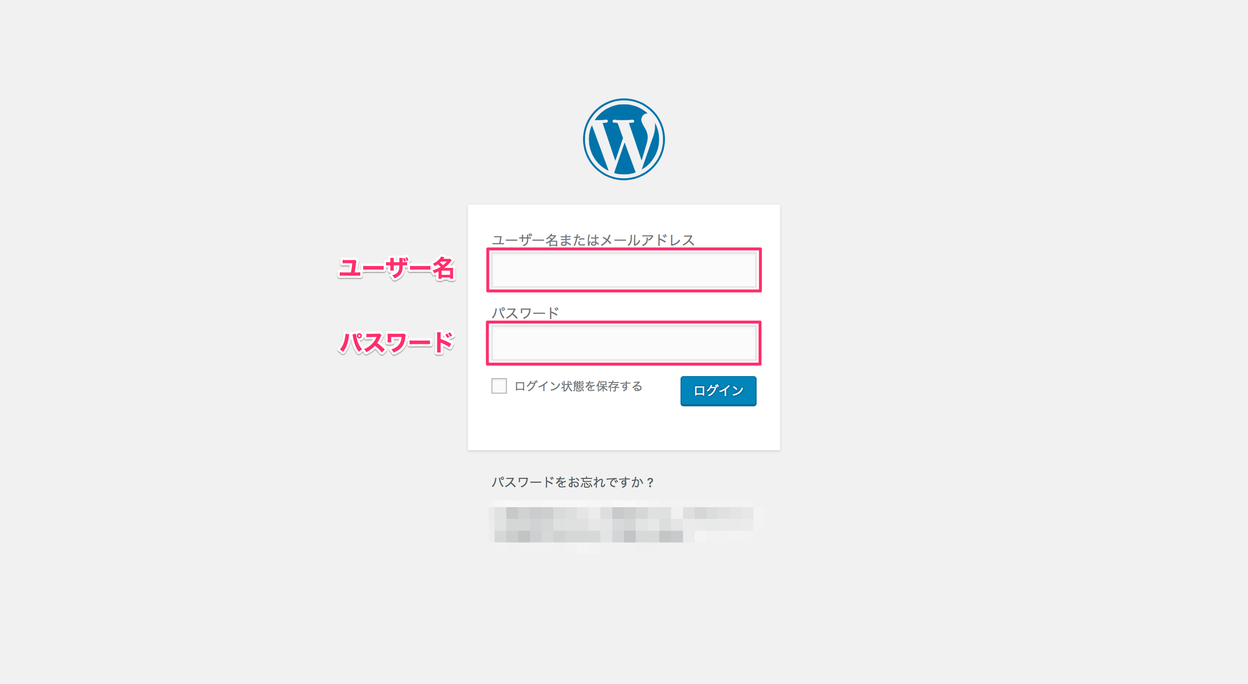 こちらはWordPress登録時に自分で入力したユーザー名とパスワードになります。