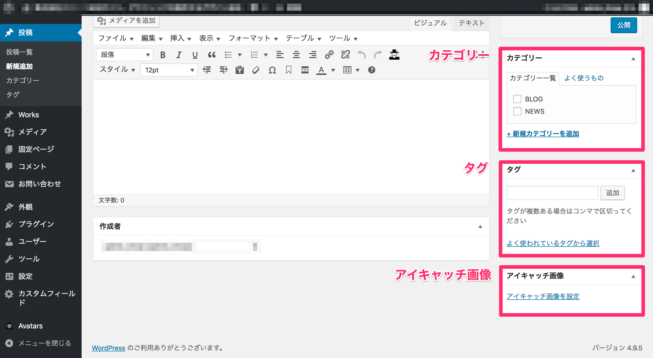 4. カテゴリー、タグ、アイキャッチ画像の設定