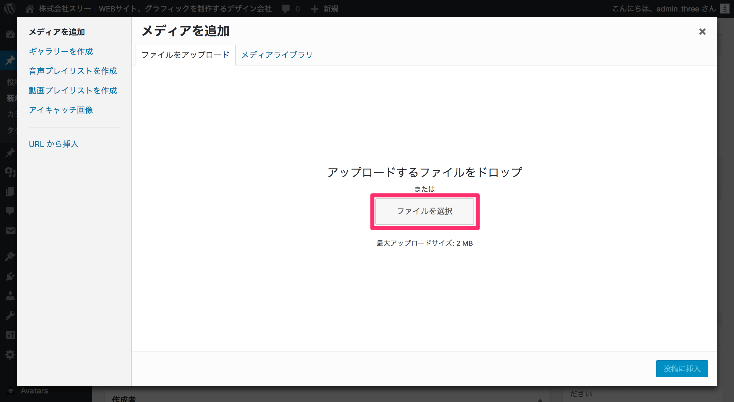 すると、このようにメディアを追加の画面に飛びます。